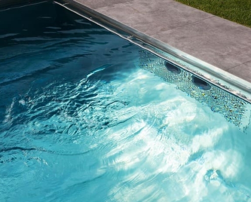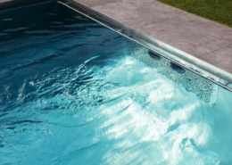Leitern „vergeuden“ keinen Platz in der Schimmzone, wie z.B. Treppen oder Sitzstufen. Wir bauen sie vor allem bei gemauerten Becken ein!